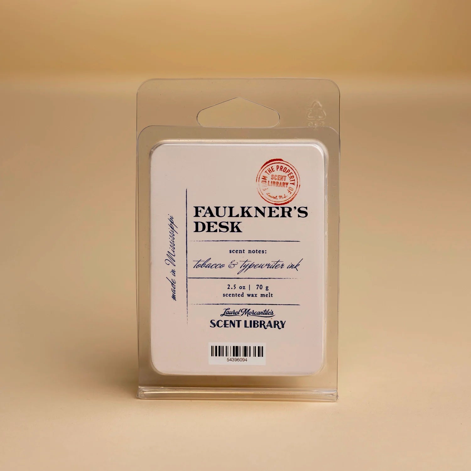 "Stepping into the quiet, contemplative atmosphere of William Faulkner's beloved library, you can feel the gravity of history and creativity all around you. The scent opens with rich, grounding notes of mahogany and worn leather, reminiscent of the sturdy desk where Faulkner penned his most iconic works. Faint notes of old books, add depth, while a touch of crisp linen brings an air of quiet elegance, drapes fluttering softly in a gentle breeze." - Erin