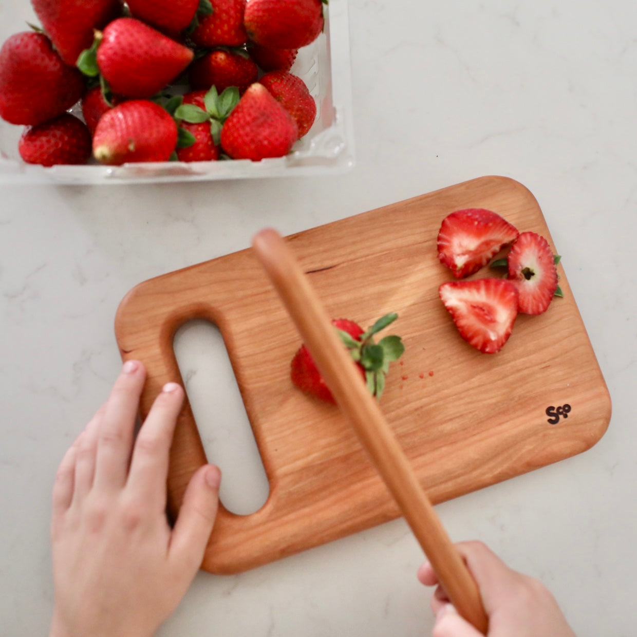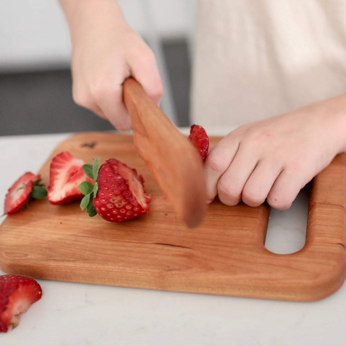 We designed this Scotsman Co. Kid's Cutting Board set to show your kiddos how to "help" in the kitchen. Made from pure hardwood, this cutting board set is durable, scaled to the perfect size, and the best tool to teach your little chef new skills in the kitchen.