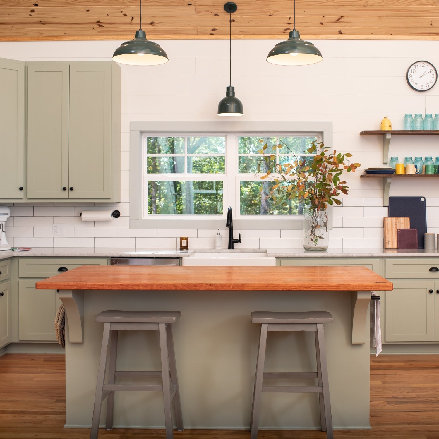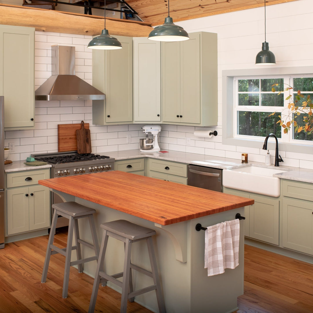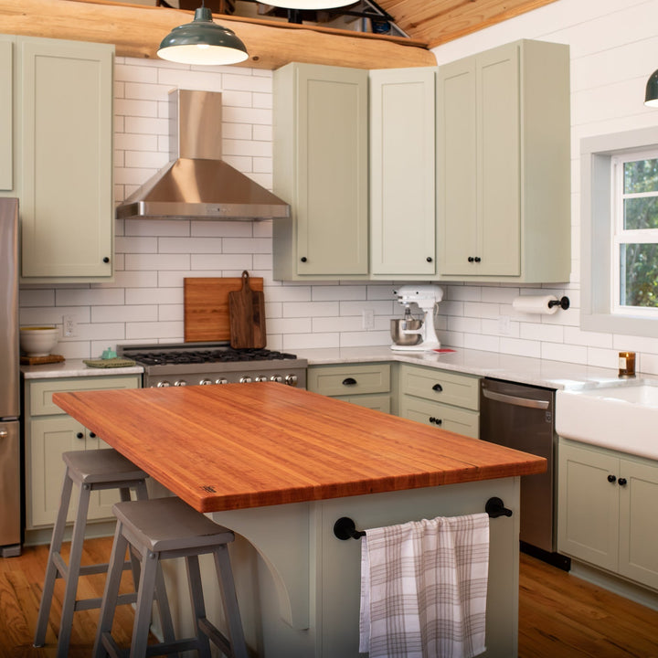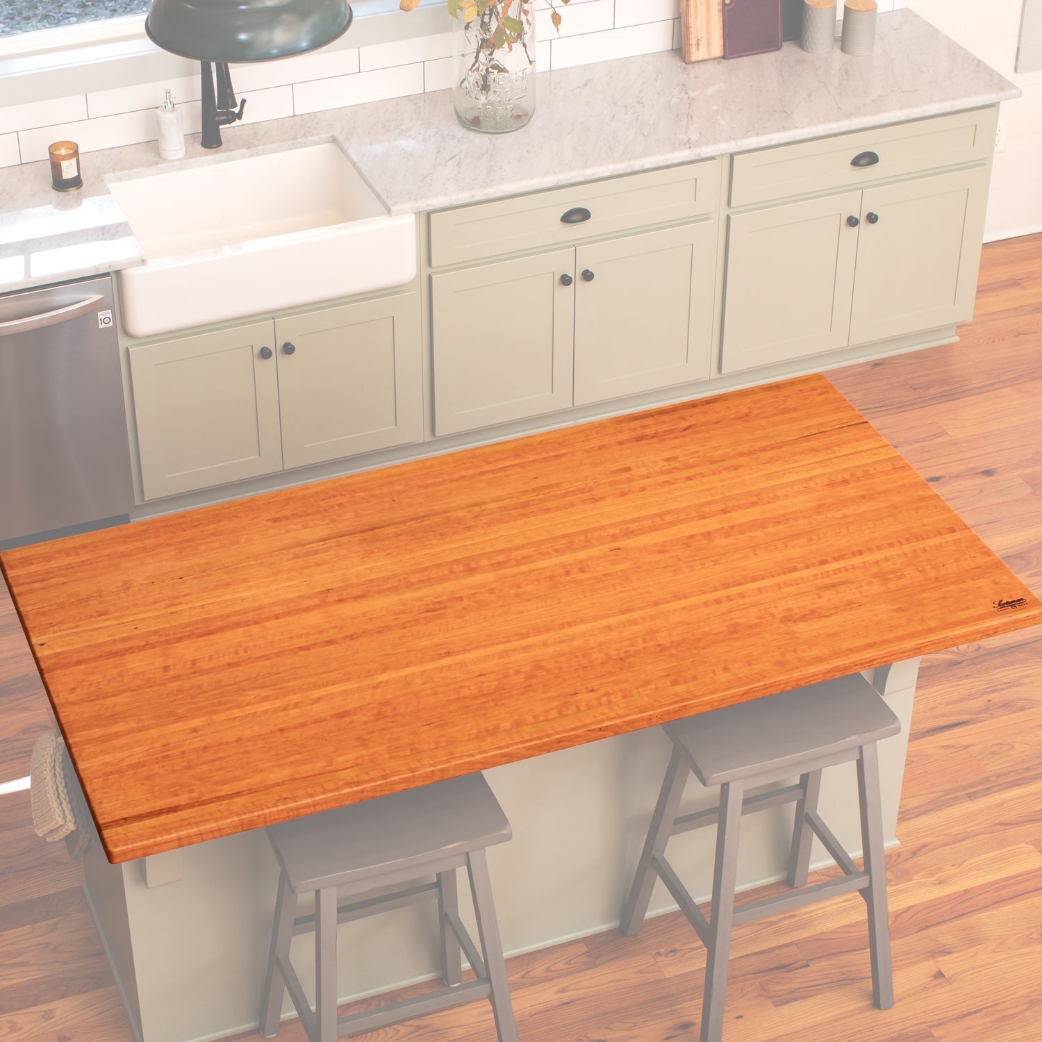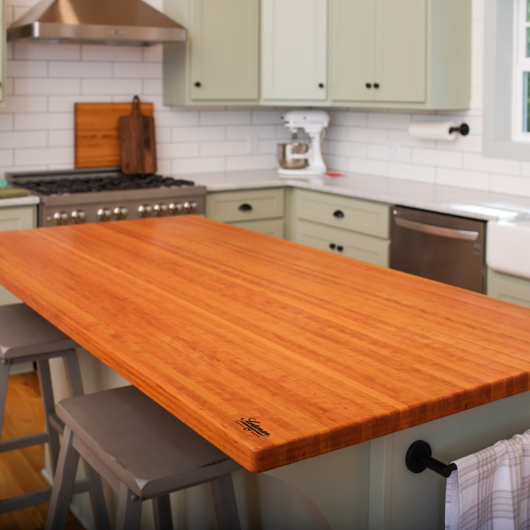 Pro tip: An oil finish means the wood grain is more exposed to nicks and scratches, but this allows for easy repair sanding and quick touch-ups. Great for heavy-use islands where the marks of use lend to the warmth of the home like historic butcher blocks.