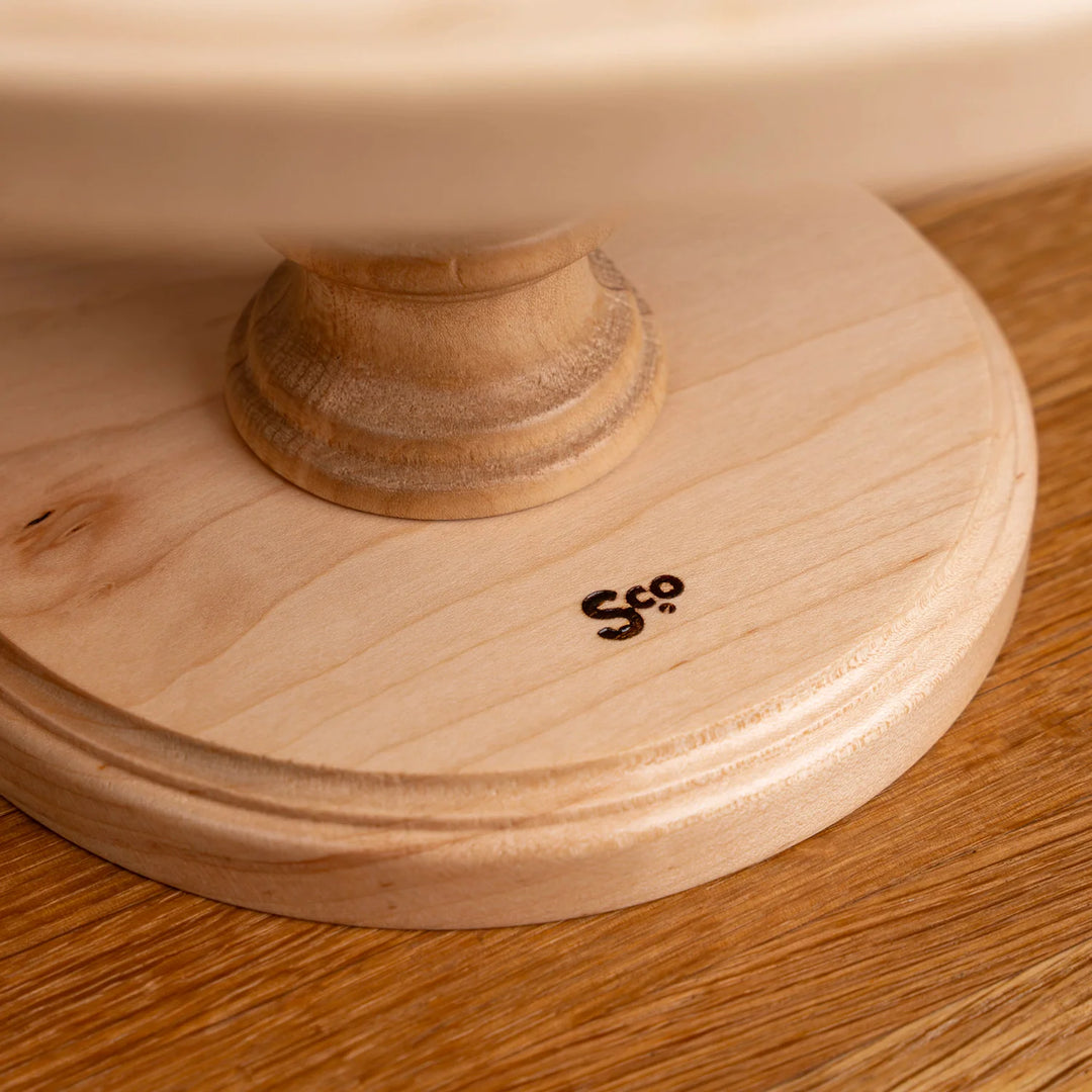 This Scotsman Co. Maple Cake Stand is an essential decorative piece in the kitchen. It will elevate any cake or dessert in your home with its gracefully turned pedestal. Finished with a polyurethane finish to further highlight the woods gorgeous grain.