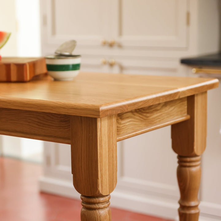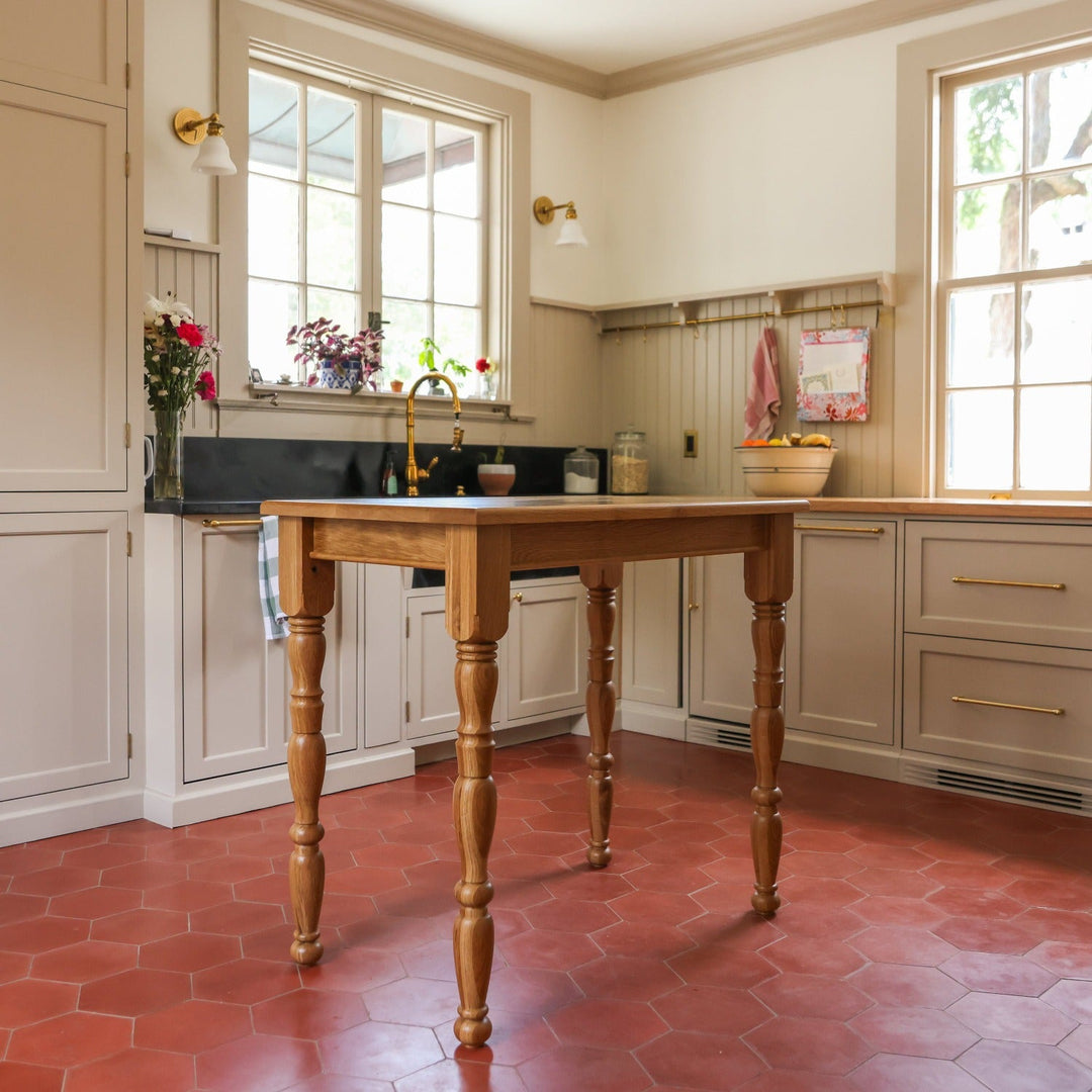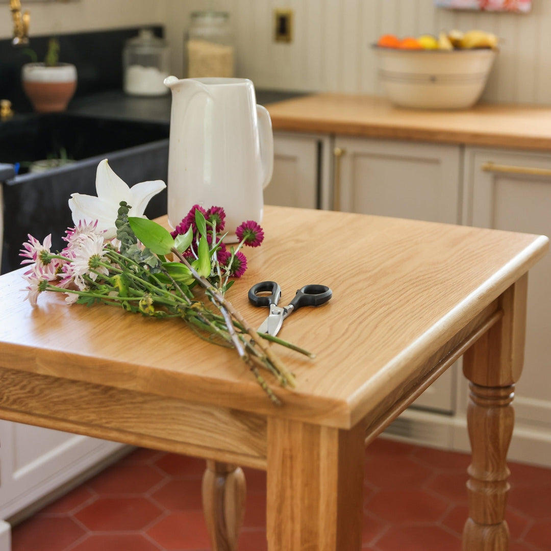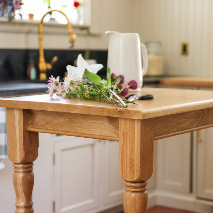 Bring a piece of Home Town into your home with this beautifully designed White Oak Island Chef Table. The design is inspired by the simple, elegant, durable food prep islands often found in historic French and English country homes and reminds us of something you might find downstairs in the kitchen at Downton.